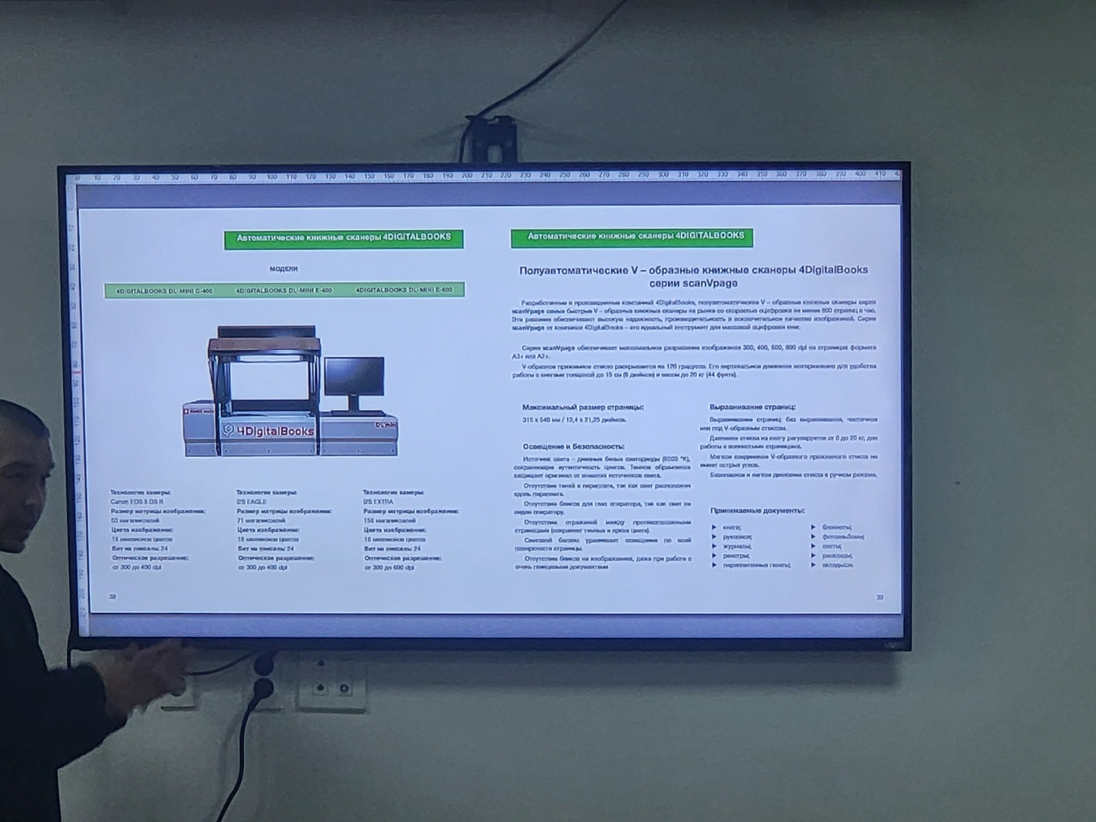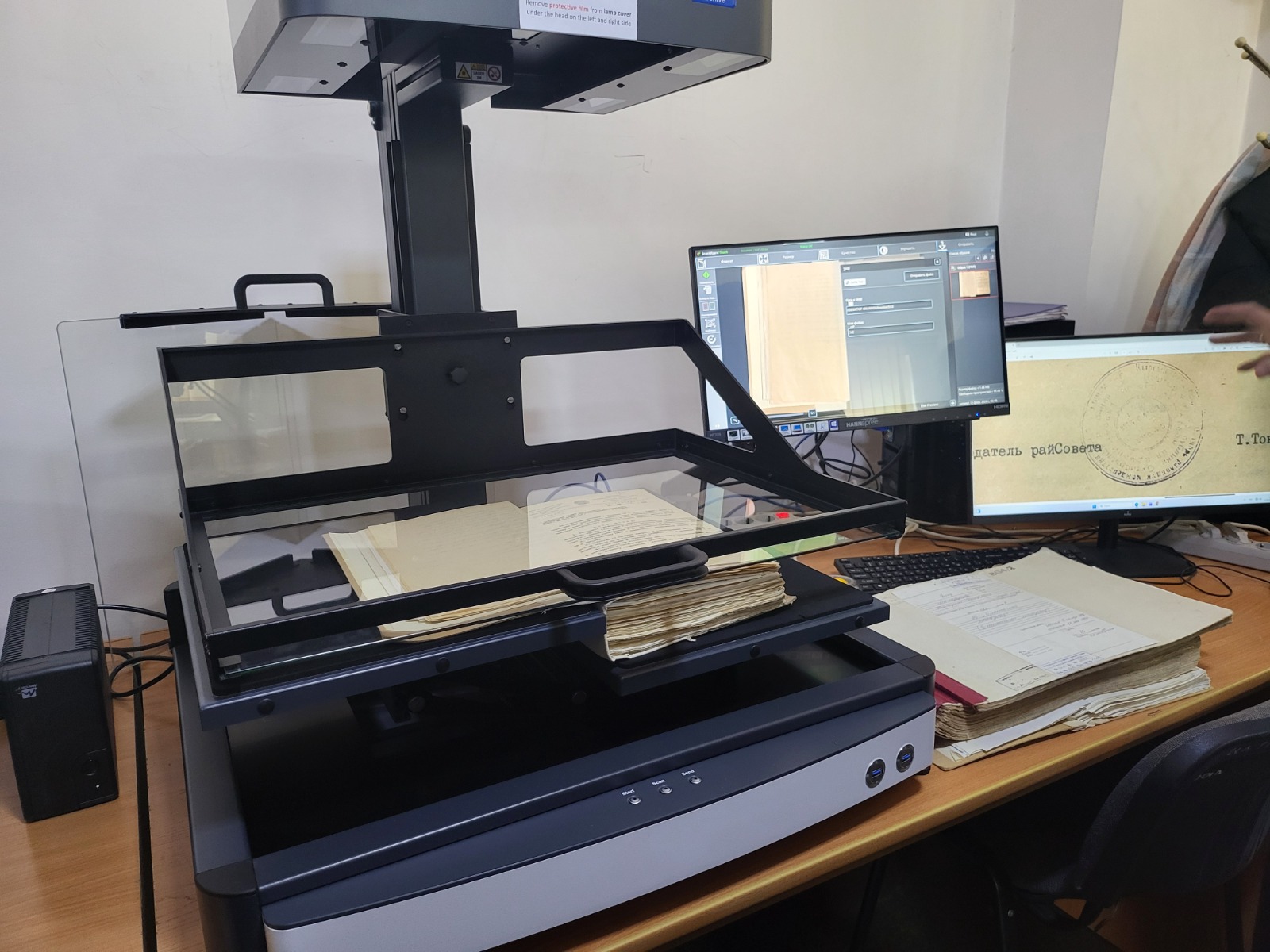 Ошондой эле документтерди санариптештирүү үчүн заманбап технологиялык чечимдер талкууланды. Тактап айтканда, катышуучулар жаңы алынган BookTek V3 Archive (А3 форматы) жана BookTek V2 Archive (А2 форматы) китеп сканерлеринин иштөөсү менен таанышты. Мындан тышкары, камсыздоочу компаниянын өкүлдөрү карталарды жана башка чоң форматтагы архивдик документтерди санариптештирүүгө арналган компаниянын каталогундагы кең форматтуу сканерлердин мүмкүнчүлүктөрү менен тааныштырышты.