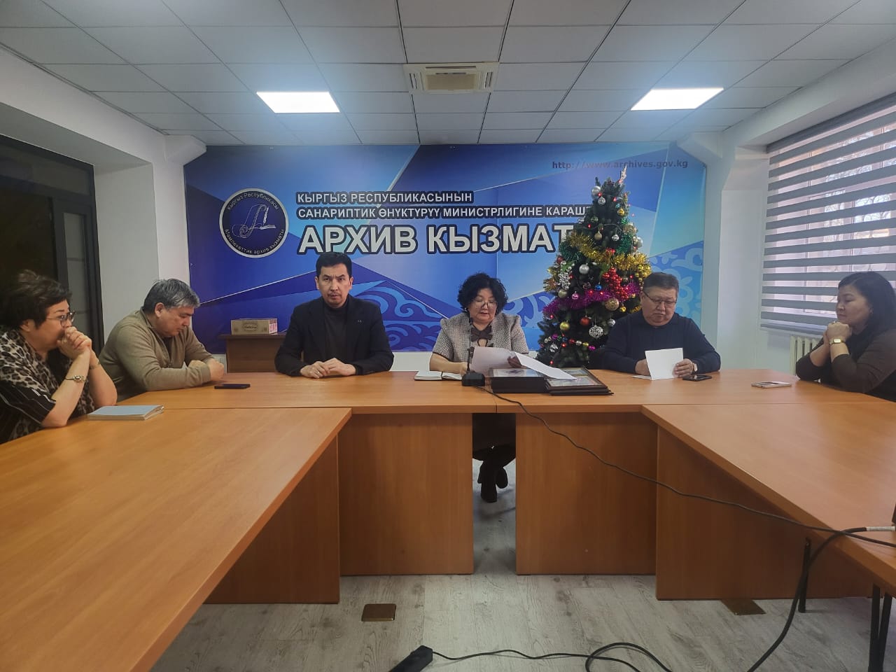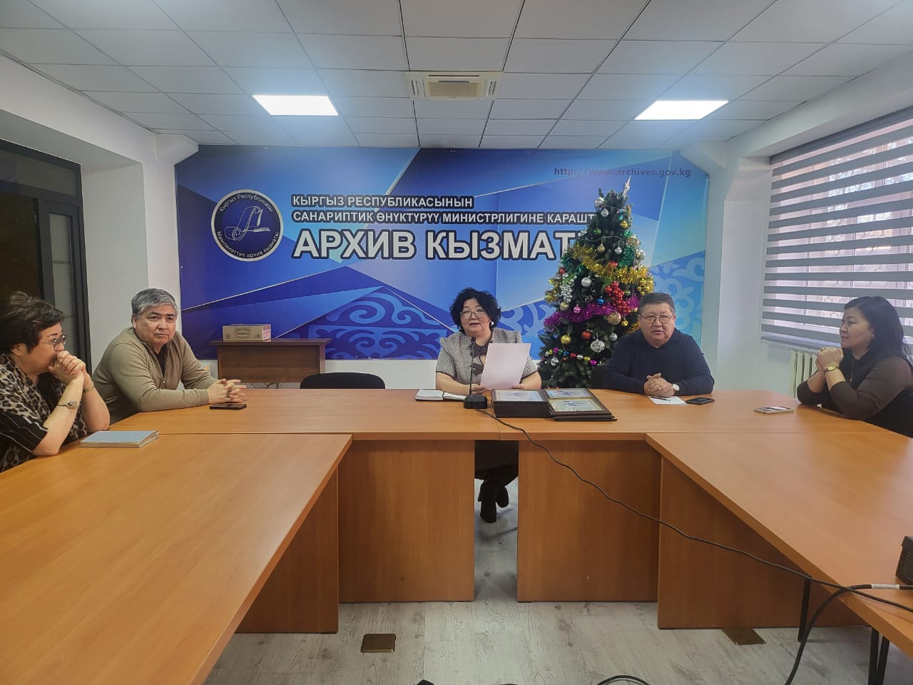 WhatsApp Image 2025 12 30 at 112205Жаңы жылдык майрамдардын алдында Кыргыз Республикасынын Архив кызматынын төрагасы мекеменин кызматкерлерин келе жаткан Жаңы жыл менен куттуктады.