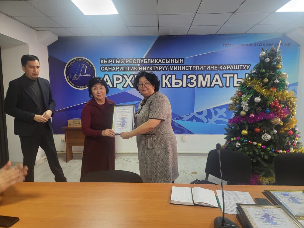 Иш-чаранын жүрүшүндө архив тармагын өнүктүрүүгө кошкон салымы, көп жылдык жоопкерчиликтүү эмгеги жана демилгелүүлүгү менен айырмаланган кызматкерлерге ыраазычылык билдирилди. Аларга эсте каларлык белектер жана дипломдор тапшырылып, аткарылып жаткан иштерге оң баа берилди.